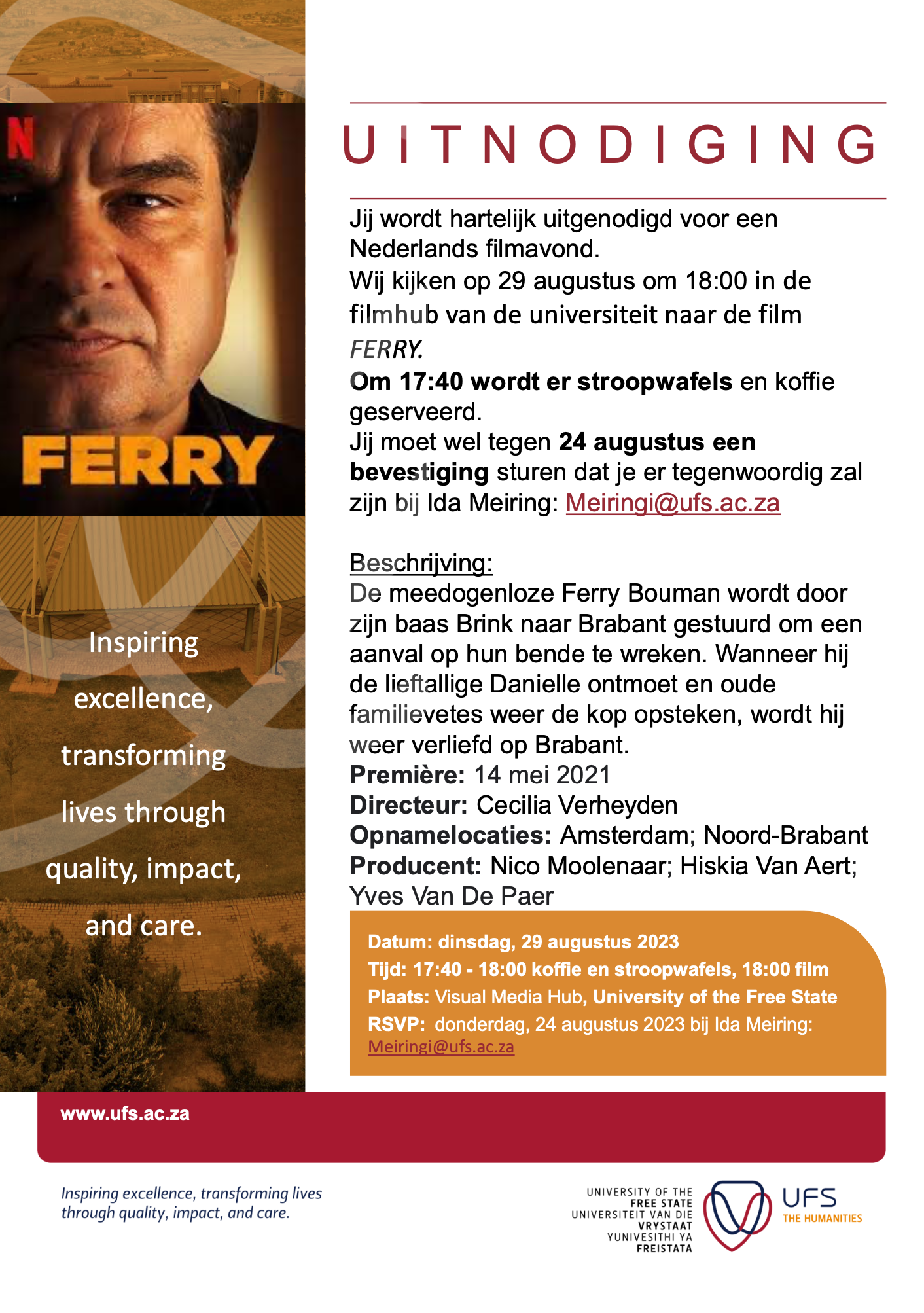 BAIE BELANGRIK: Wys asb. hierdie uitnodiging by die ingang van die UV om sodoende toegang tot die kampus te verkry, indien u nie 'n personeellid of 'n student aan die UV is nie.