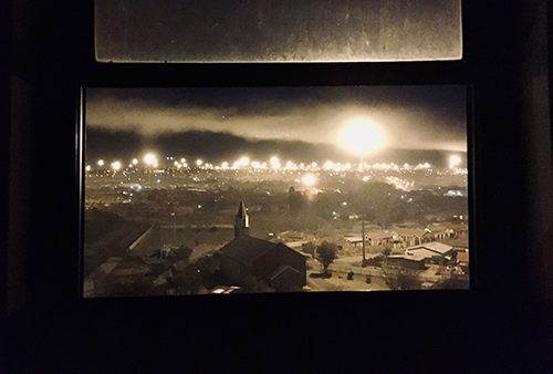 Heinrich Janse van Rensburg’s late -night photo highlights the economic inequality that persists in South Africa. The photo was taken from the Pelonomi Hospital which is located in Heidedal, Bloemfontein, and shows the old, forsaken Dutch Reformed church in the foreground, shacks in the background with smoke billowing from the dwellings, where up to six people live in one room trying to stay warm during winter. They are built so close to each other that there can be no talk of effective social distancing.